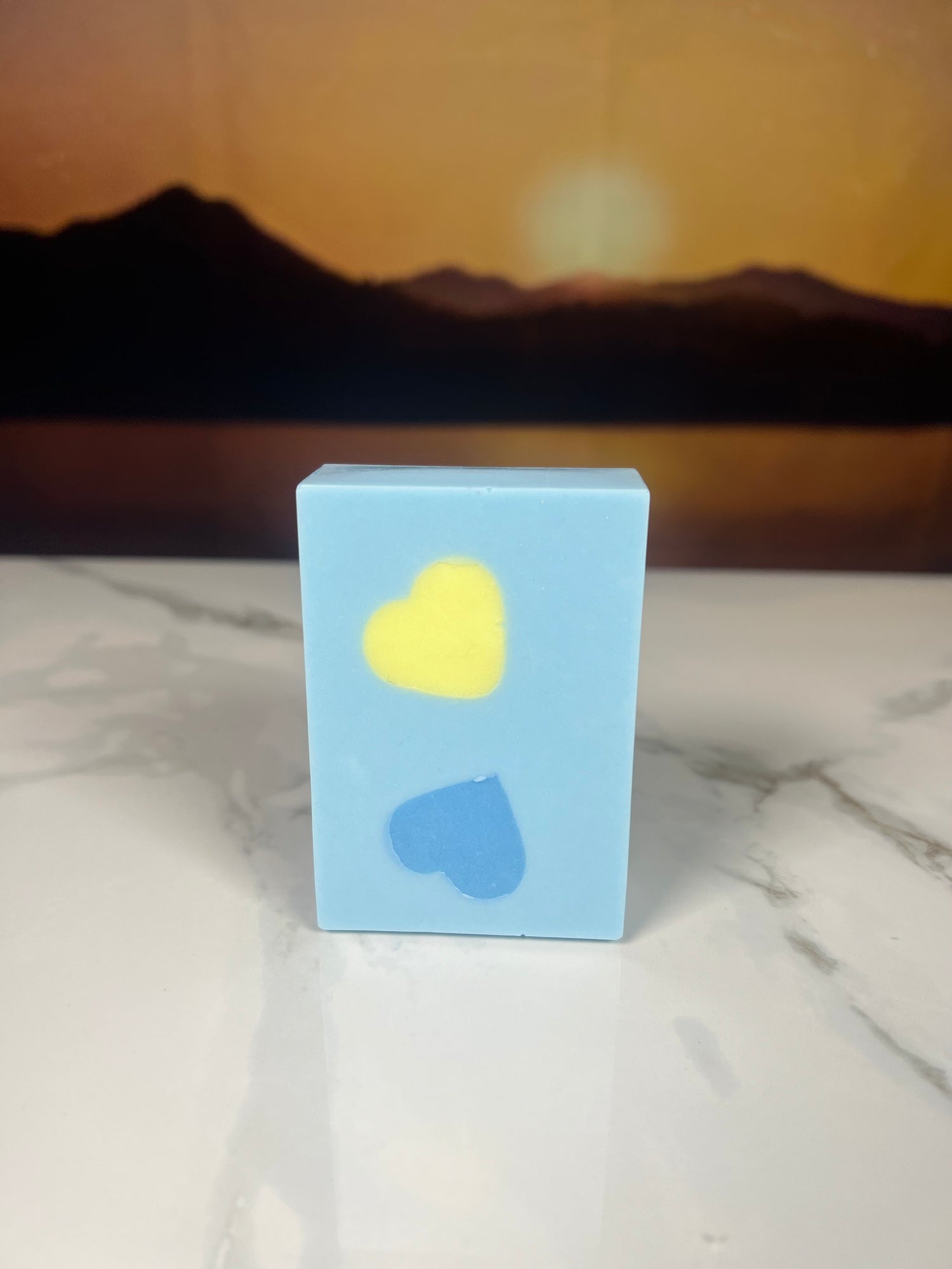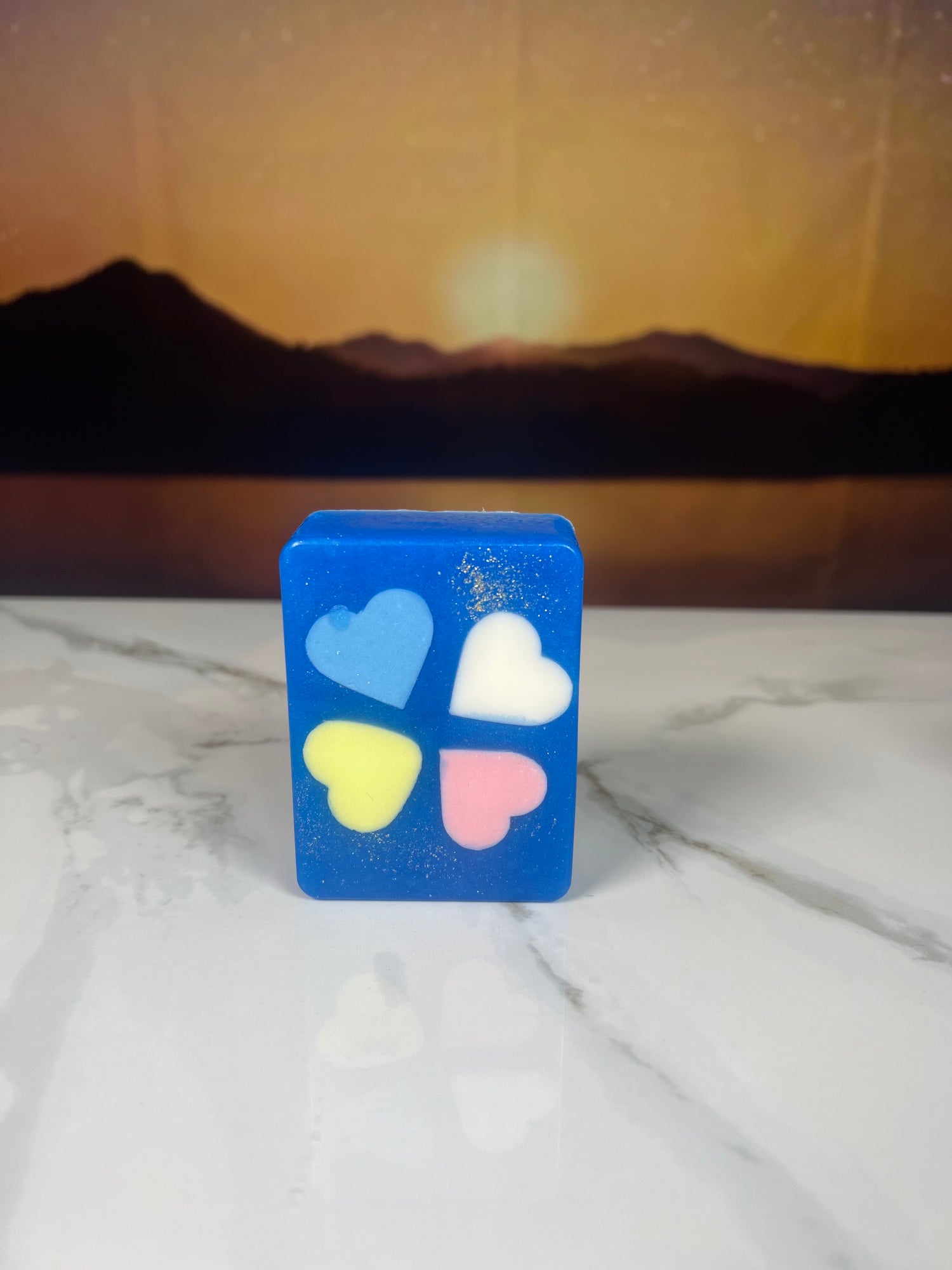 Ingredients: Goats Milk Soap (water, propylene glycol, sodium stearate, glycerin, sucrose, sodium laureth sulfate, goat milk, sorbitol, sodium laurate, sodium myristate, sodium lauryl sulfate, silica, sodium chloride, stearic acid, lauric acid, titanium dioxide, pentasodium pentetate, tetrasodium etidronate), Clear Glycerin Soap (glycerin, water, sodium stearate, propylene glycol, sorbitol, sodium laurate, sodium laureth sulfate, sodium chloride, sodium lauryl sulfate, stearic acid, lauric acid, pentasodium pentetate, tetrasodium etidronate), Cocamidopropyl Betaine, 100% Pure & Organic Vegetable Glycerin, Pure-Castile Soap (purified water, organic coconut oil, potassium hydroxide, organic olive oil, organic castor oil, organic argan oil, organic jojoba oil, organic hemp oil, organic almond sweet oil, organic apricot kernel oil, organic prickly pear oil, organic USP vegetable glycerin (flaxseed derived), fair trade coconut oil), Lavender Fragrance Oil, Sodium Lactate, Coconut Oil, Shea Butter (grade A raw and natural ivory shea butter sourced sustainably from Ghana, Africa), Vitamin E, Calendula Oil (Grapeseed Oil (NON-GMO), infused with Calendula, Licorice Root, Jojoba Oil, Vitamin E), Palm Oil, Pigments (Azure, Gold)